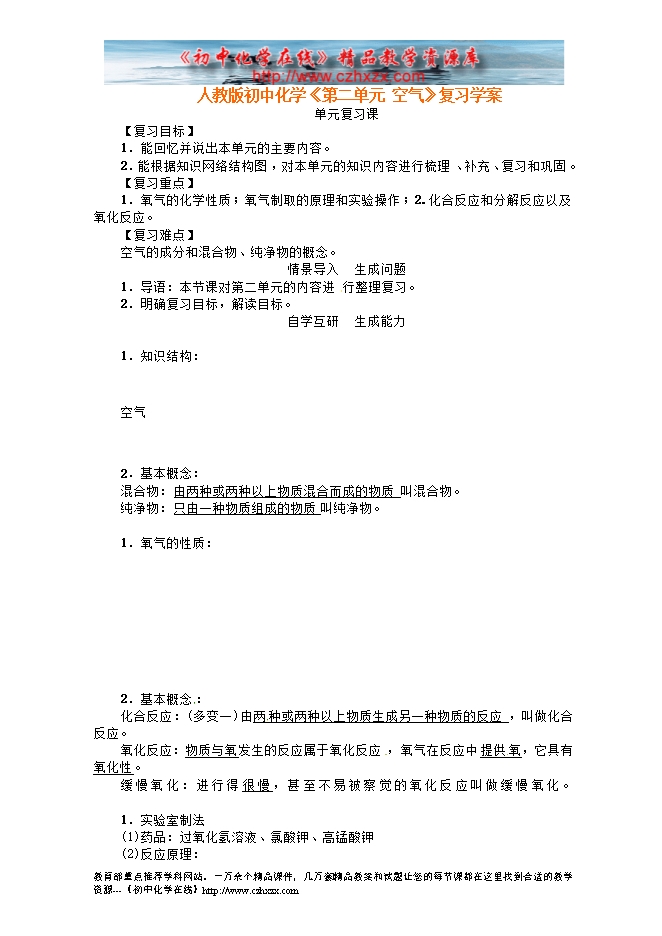 - 上一份资料:人教版初中化学《第一单元 走进化学世界》复习学案