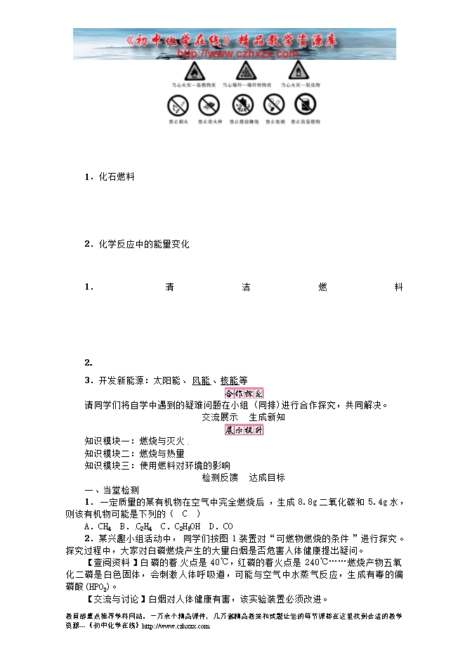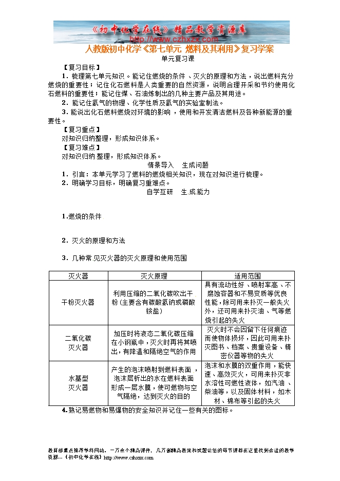 人教版初中化学《第七单元 燃料及其利用》复习学案