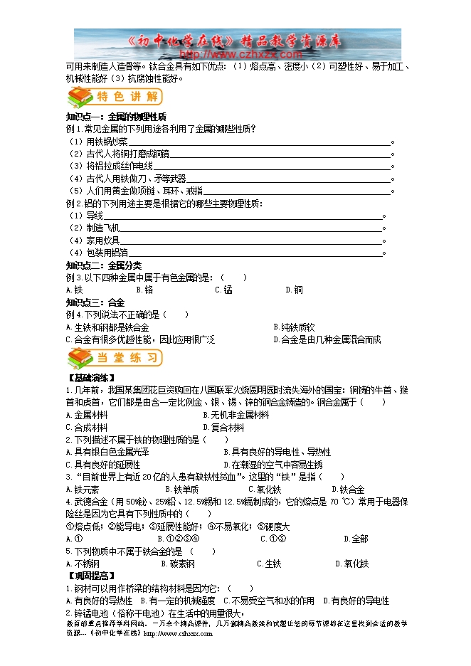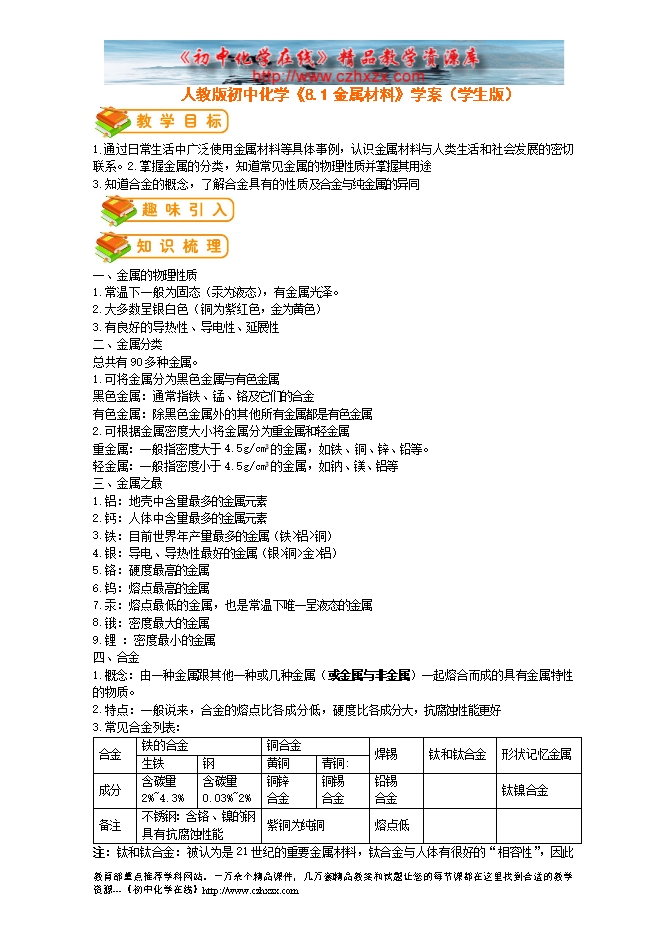 - 下一份资料:人教版初中化学《8.1金属材料》学案(教师版)