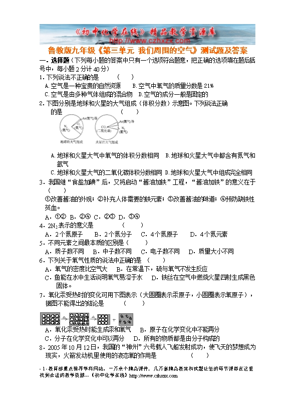 鲁教版九年级《第四单元 我们周围的空气》测试题及答案