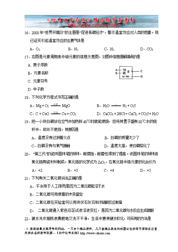 - 下一份试卷:2008—2009年北京市海淀区第一学期期末化学考试试题及参考答案