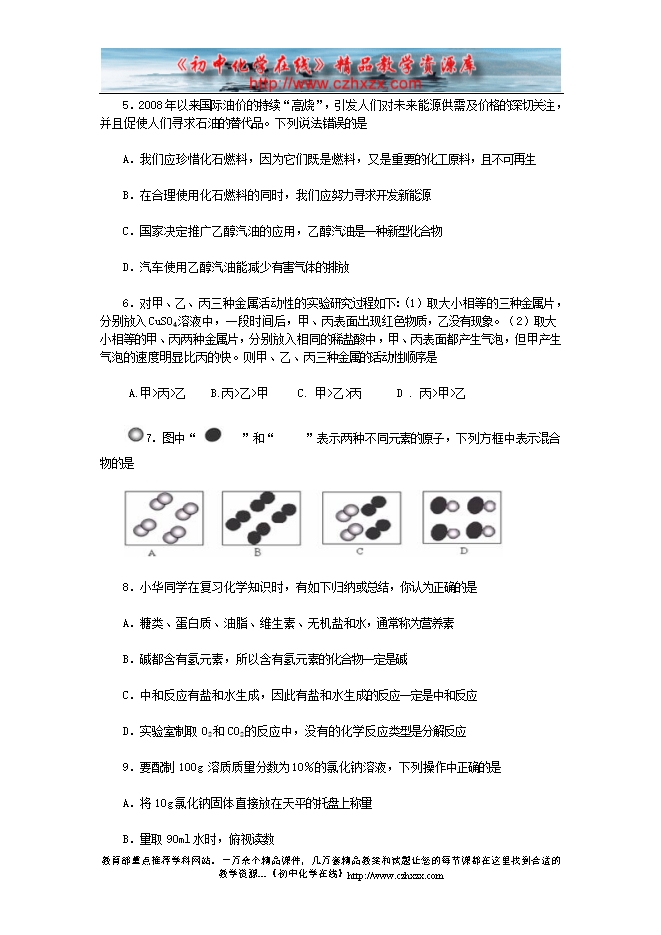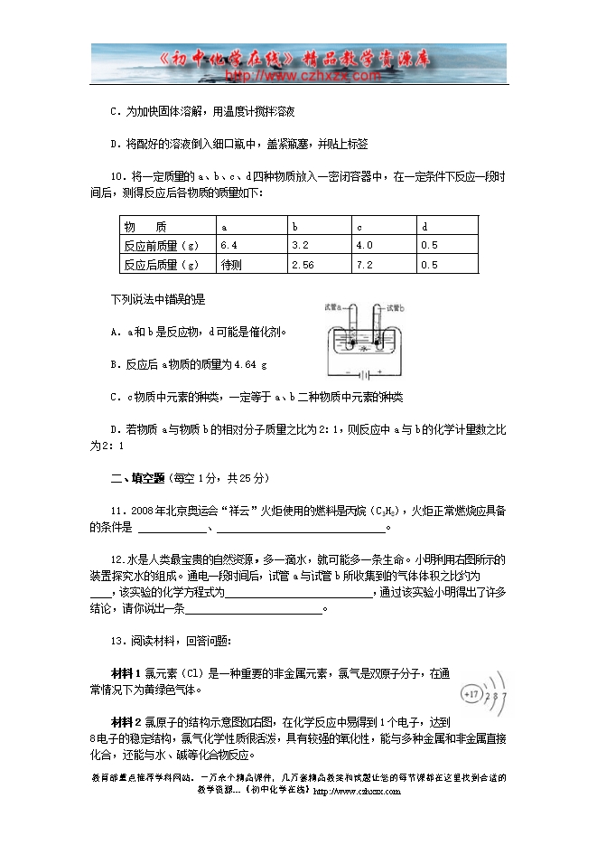 - 下一份试卷:2008年广东肇庆市中考化学试题及答案