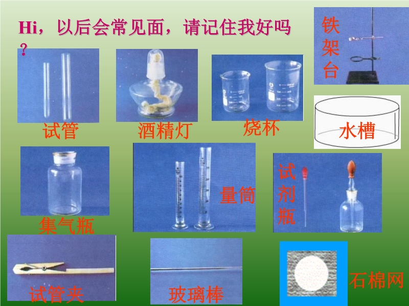 【内容简介】本课件是人教版第一单元《课题3 走进化学实验室》PPt课件,由8张幻灯片组成,用拟人话的语言介绍实验器材,以诗歌的语言介绍注意事项。非常实用。