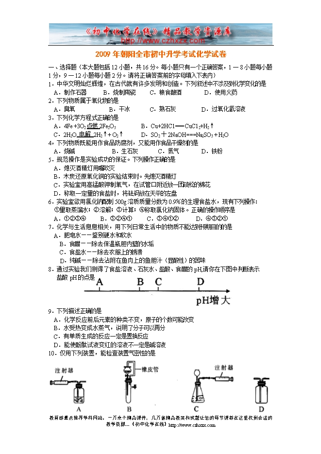 - 上一份试卷:2009年北京市中考化学试题及答案