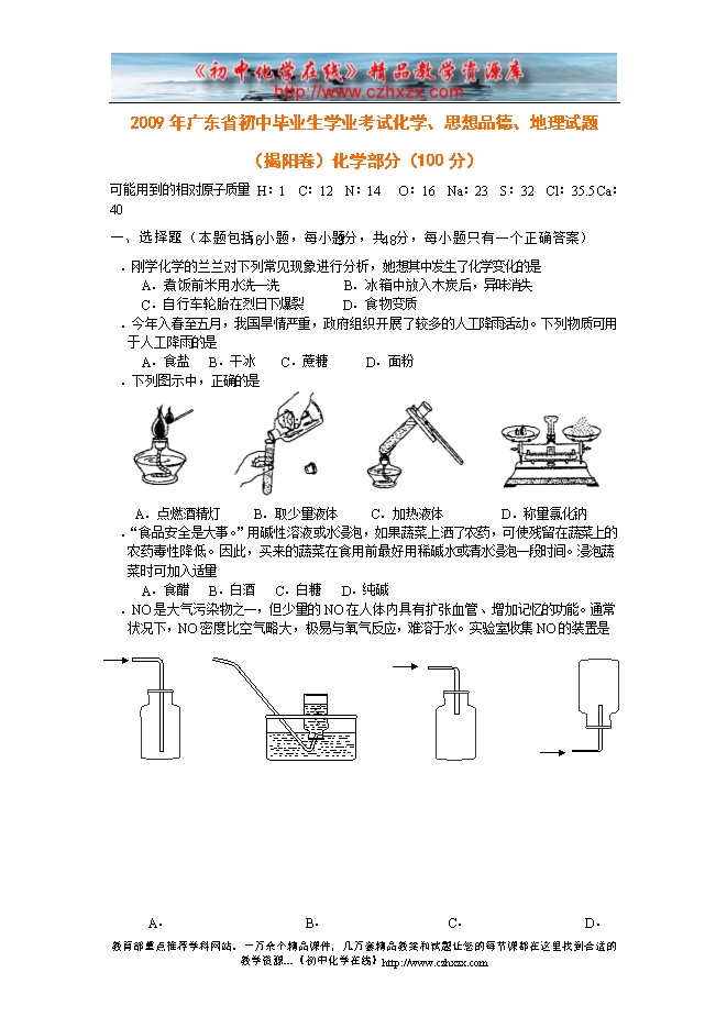 - 下一份试卷:2009年广东省茂名市中考化学试题及答案