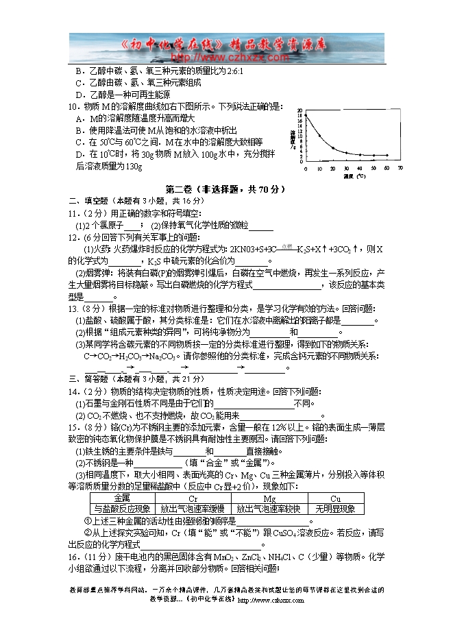 - 上一份试卷:2009年广东省揭阳市中考化学试题及答案