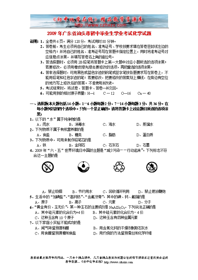 - 下一份试卷:2009年广东省湛江市中考化学试题及答案