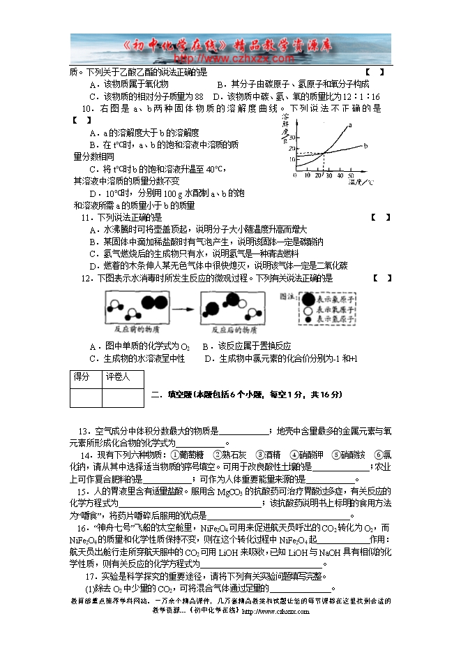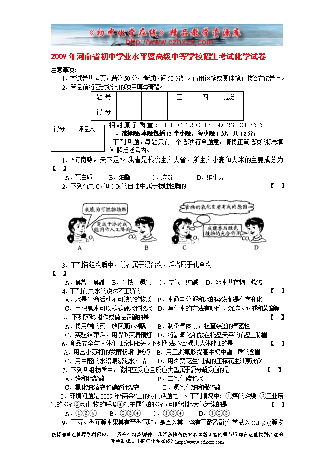 - 下一份试卷:2009年黑龙江省哈尔滨市中考化学试题及答案