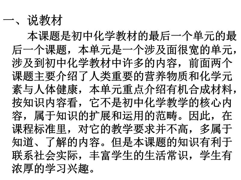 人教版《第十二单元 课题3 有机合成材料》说课(ppt课件方案一)免费