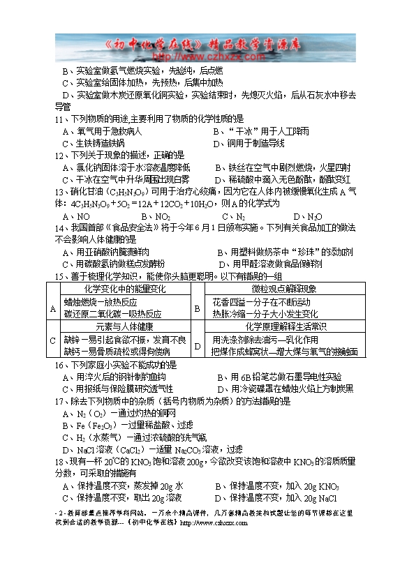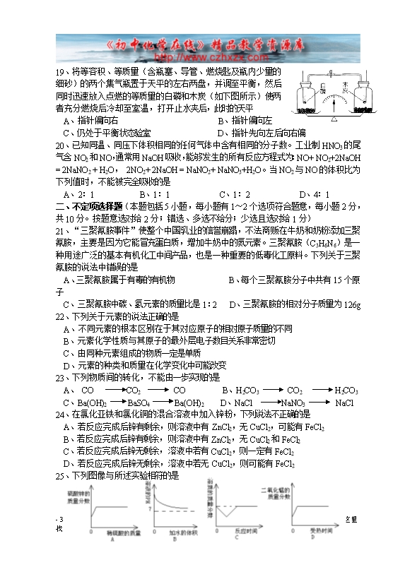 2008-2009学年度江南中学中考模拟考试化学试卷及答案
