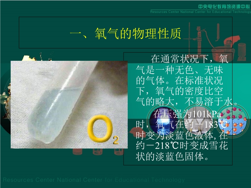 【内容简介】本课件以粤教版为基础制作,共有7张幻灯片组成,图片精美。探究了氧气的物理性质、氧气的化学性质、 氧气的用途等。