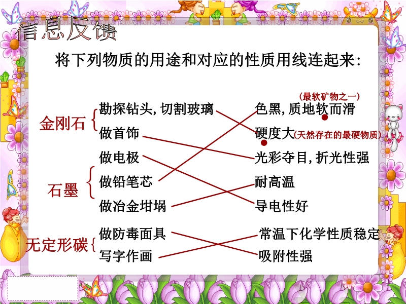 【内容简介】本课件以粤教版为基础制作,共有20张幻灯片组成,图片精美。从认识无定形碳,金刚石、石墨物理性质不同的原因到碳的化学性质、碳与氧气的反应、碳与二氧化碳的反应、一氧化碳的燃烧以及随堂练习等。