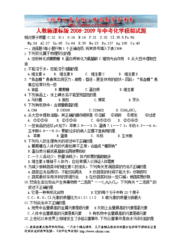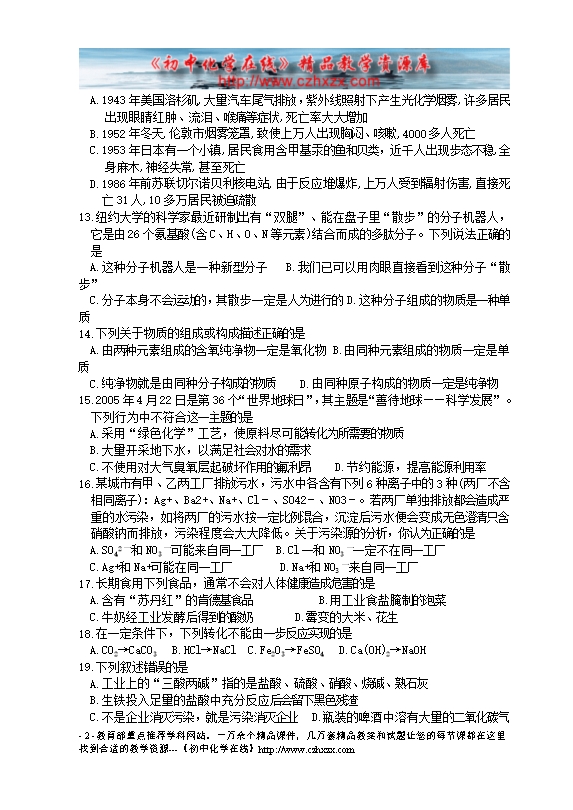 - 下一份试卷:2010年广州市中考模拟考试化学试题及答案