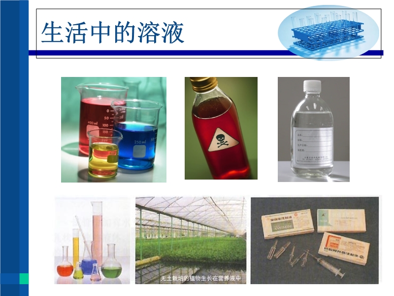 【内容简介】本课件以沪教版为基础制作,共有16张幻灯片组成,从一组精美的图片生活中的溶液观察出今天的课题,实验总结物质在水中的扩散,观察溶液的特征,探究化学怎样改变生活,并巩固练习