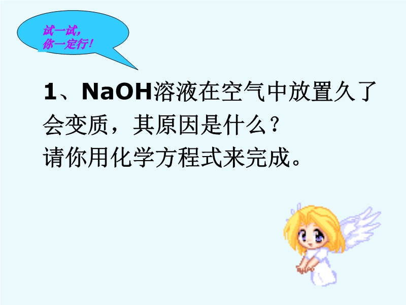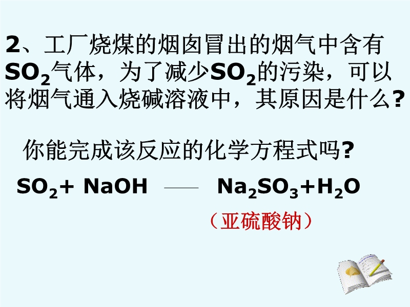 【内容简介】本课件以沪教版为基础制作,共有17张幻灯片组成,是第七章第二节第二课时内容,以文字为主探究NaOH变质,为了减少SO2的污染,可以将烟气通入烧碱溶液中其原因等总结碱的性质,并综合练习和运用