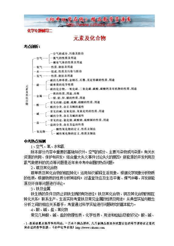 初三化学复习专题2-元素及化合物(有答案)