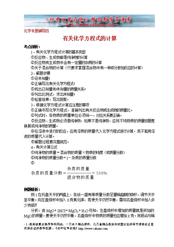 初三化学复习专题4-有关化学方程式的计算(有答案)