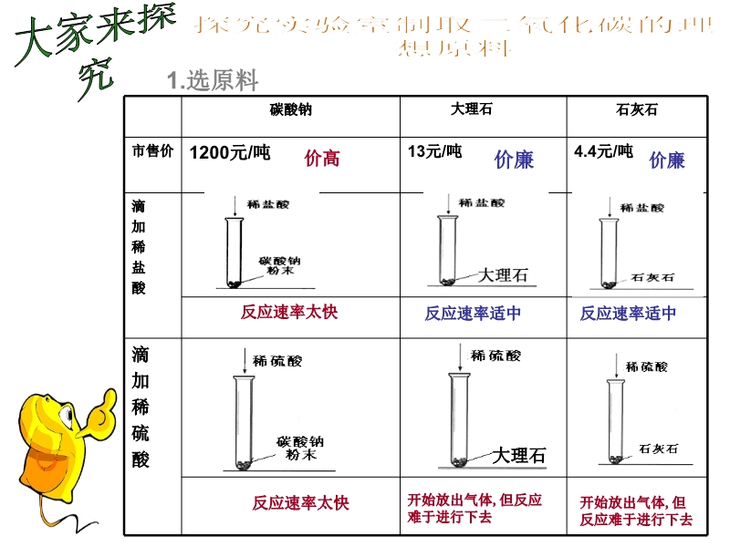 【内容简介】本课件以2012新人教版教材第六单元内容为基础制作基础制作,共有16张幻灯片组成,制作精美,实验探究了二氧化碳的制取,并巩固练习
