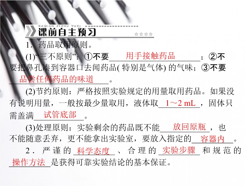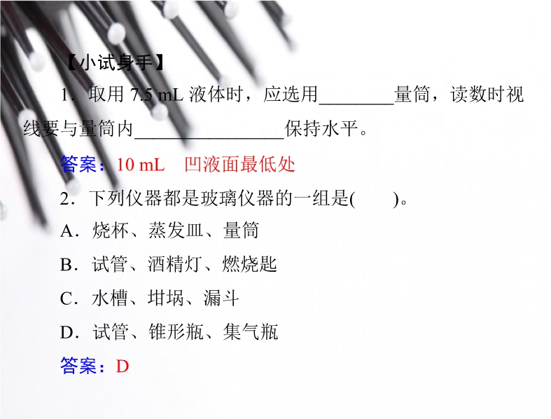 2012新人教版初中化学《 第一单元课题3走进化学实验室 第1课时 常见仪器的使用 药品的取用》随堂优化训练(PPt课件)
