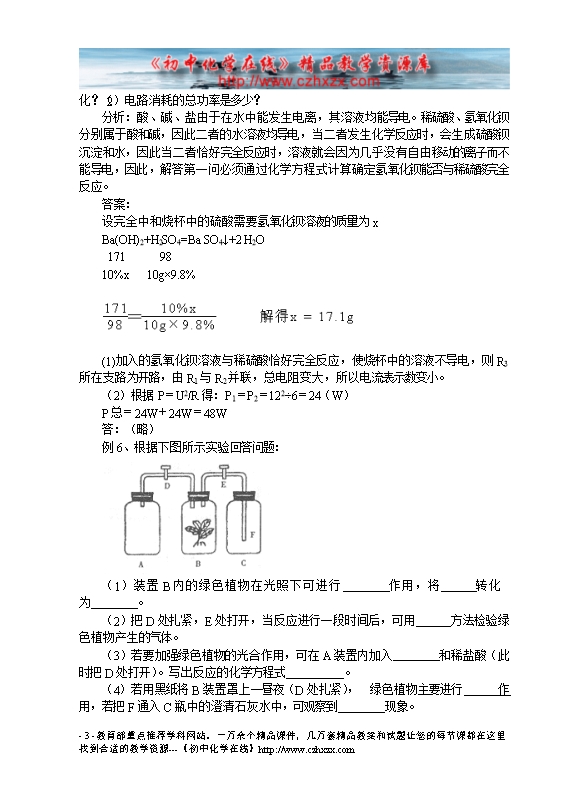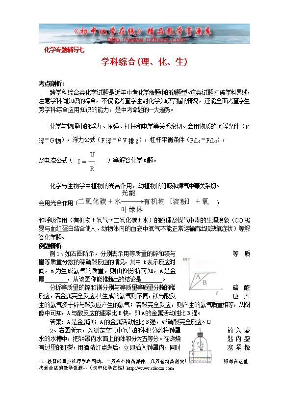 初三化学复习专题7-学科综合(理、化、生)(有答案)