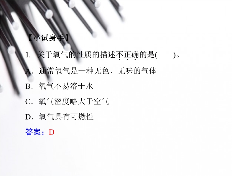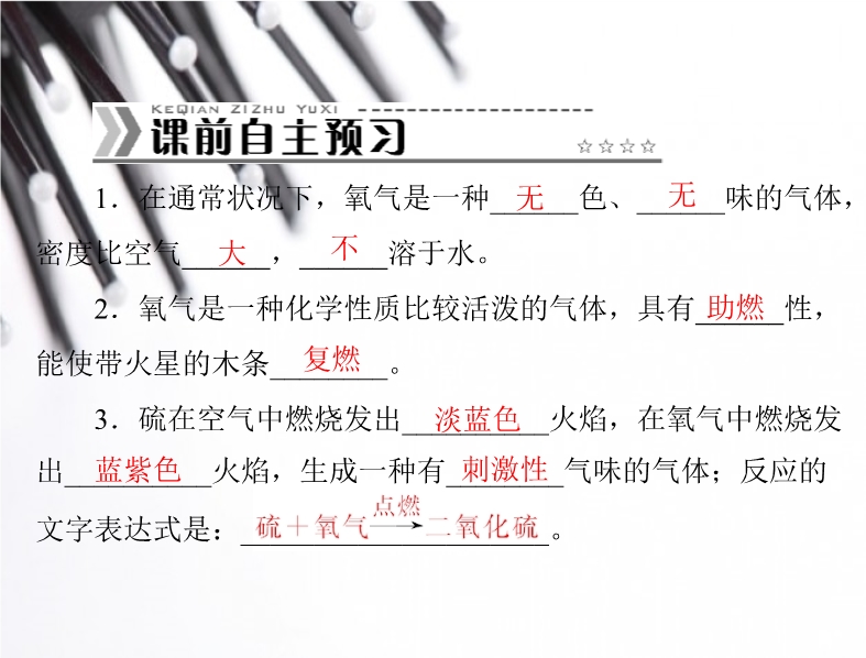 2012新人教版初中化学《第二单元 课题2 第1课时 氧气的性质》随堂优化训练(PPt课件)