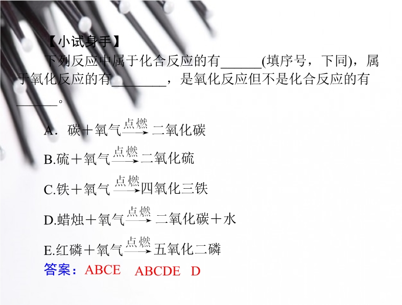 2012新人教版初中化学《第二单元 课题2 第2课时 氧化反应及化合反应》随堂优化训练(PPt课件)