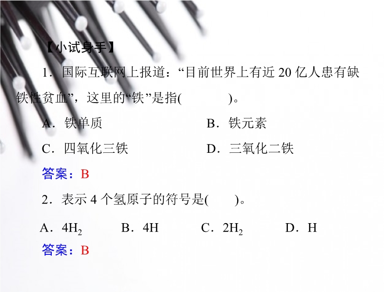 2012新人教版初中化学《第三单元课题3 元素》随堂优化训练(PPt课件)