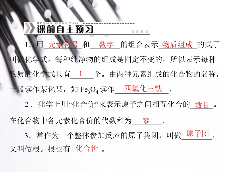 2012新人教版初中化学《第四单元 课题4 化学式与化合价(第一课时)》随堂优化训练(PPt课件)
