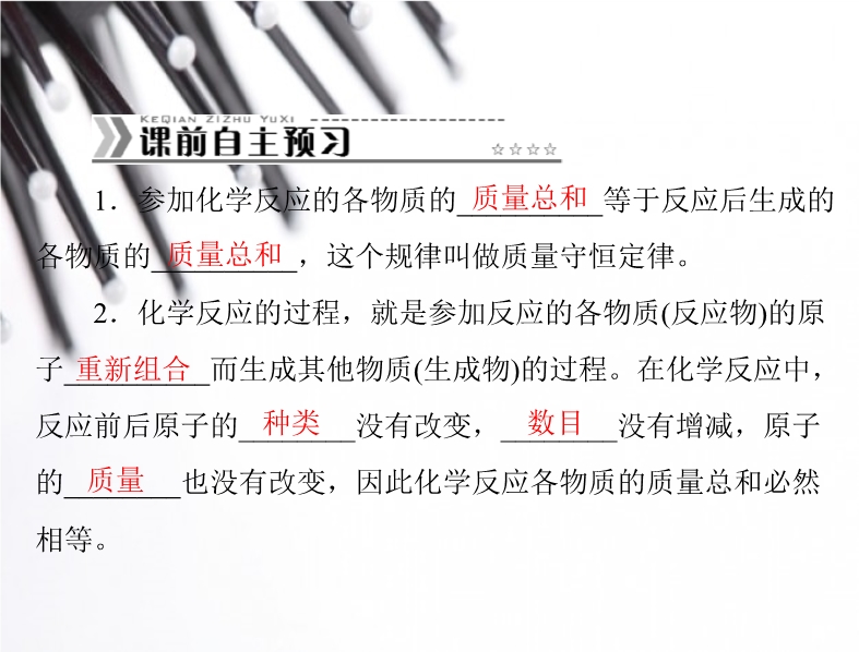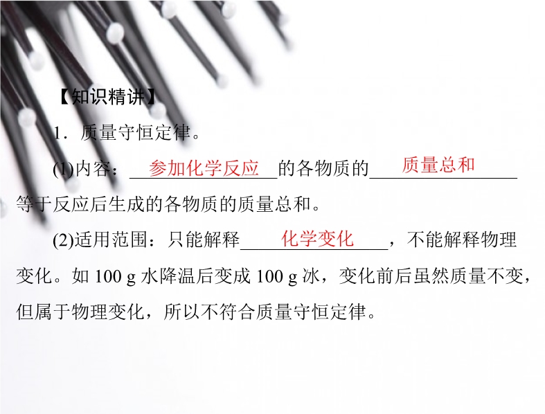 - 1652021年秋人教版九年级化学上册《 课题5.1 质量守恒定律》同步精品课件(PPT+个视频)
