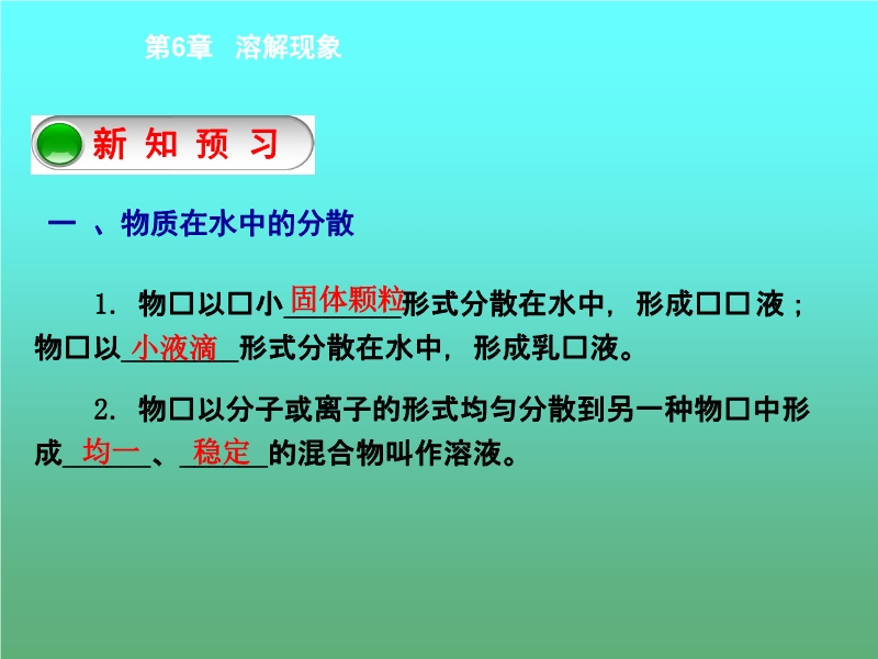 - 420沪教版九年级化学下册《6.1 物质在水中的分散》教学课件
