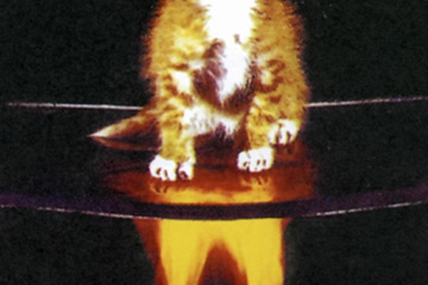 利用聚硅氧烷(牌号为RTV615)制成的隔热板,能阻隔2 200 ℃的高温,使这只小猫受到保护,能安然无恙地站在上面。这种材料是一种透明橡胶,具有隔绝强热功能。类似的聚硅氧烷已经用于大空船的隔热屏,它能耐太空船重返大气层时所产生的8 300 ℃的高温达三分钟之久。
