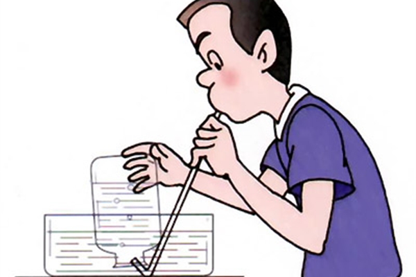 将饮料管小心地插入集气瓶内,并向集气瓶内缓缓吹气,如图所示(注意:换气时不要倒吸集气瓶内的水;吹气时要用一只手扶住集气瓶,以免翻倒),直到集气瓶内充满呼出的气体。
