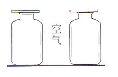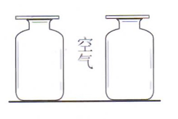 实验室里闲置的集气瓶其实都充满着空气。取两个空集气瓶,其中为空气,瓶口盖上玻璃片,正放在实验桌上。如图所示。