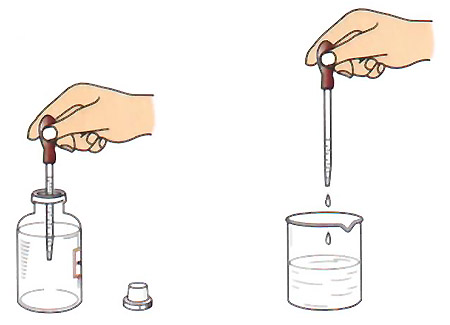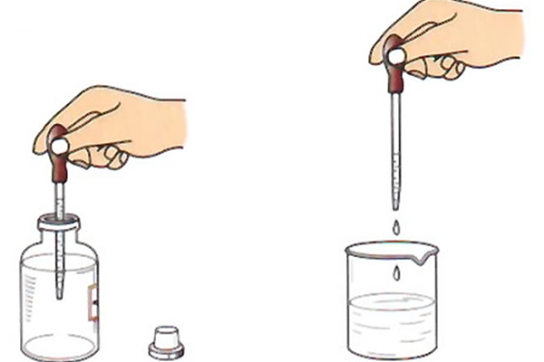 取用少量液体时还可用滴管。取液后的滴管,应保持橡胶胶帽在上,不要平放或倒置,防止液体倒流,沾污试剂或腐蚀橡胶胶帽;不要把滴管放在实验台或其他地方,以免沾污滴管。用过的滴管要立即用清水冲洗干净(滴瓶上的滴管不要用水冲洗),以备再用。严禁用未经清洗的滴管再吸取别的试剂。
