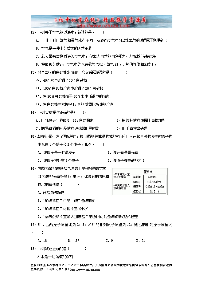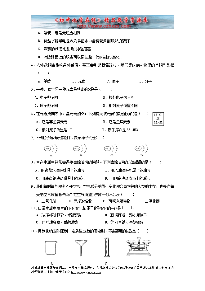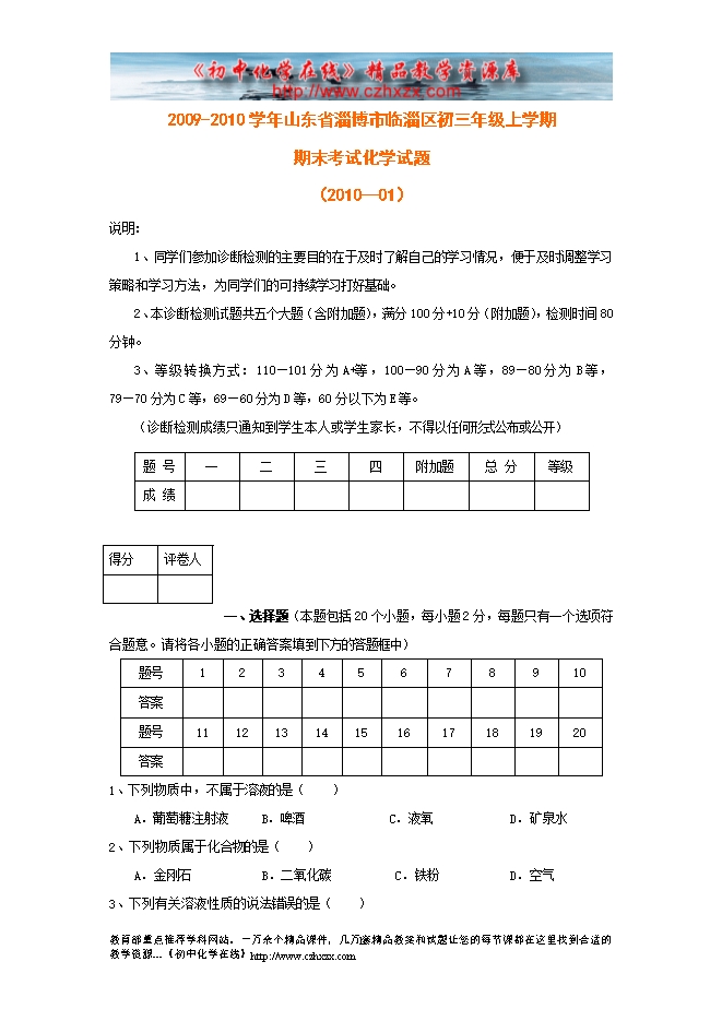 2009-2010学年山东省淄博市临淄区初三年级上学期期末考试化学试题及答案(鲁教版)