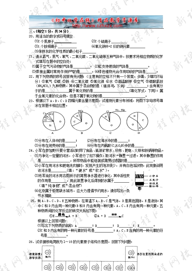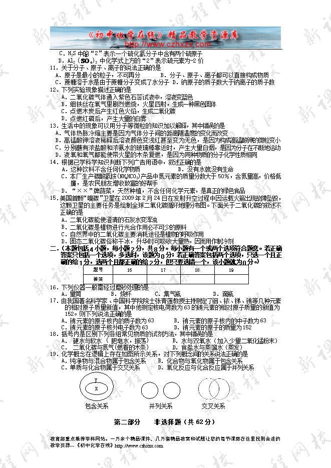 沪教版2009—2010学年度第一学期期中考试九年级化学试卷