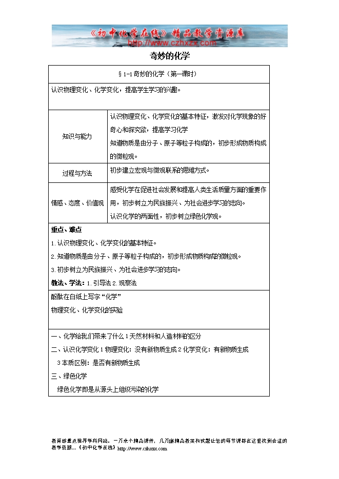 - 下一份资料:鲁教版第一章《第一节 奇妙的化学》教学设计(方案一第二课时)
