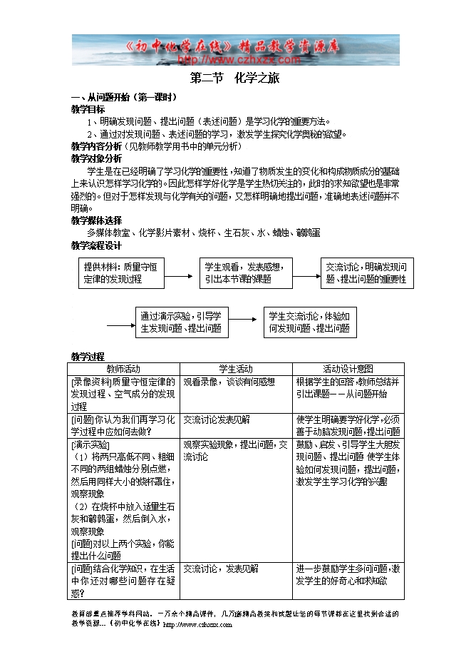 鲁教版第一章《化学之旅》教学设计(旧)