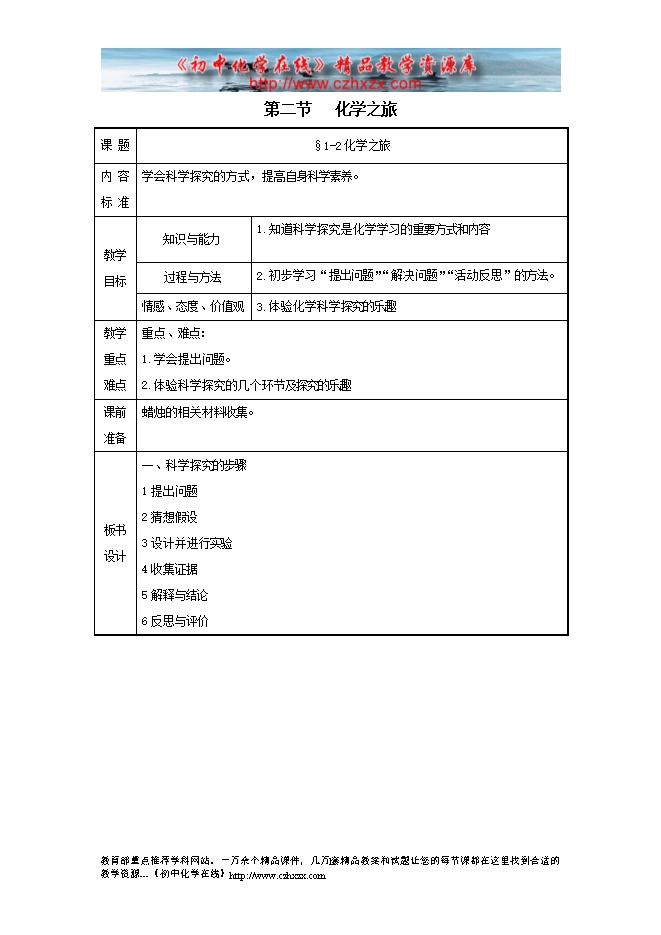 - 上一份资料:鲁教版第一章《化学之旅》教学设计(旧)