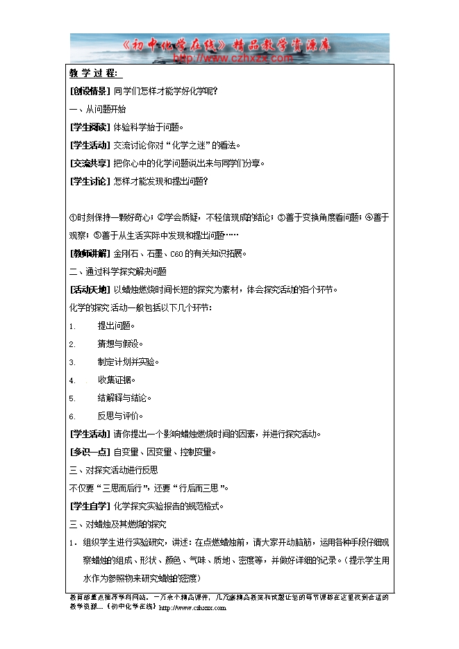 鲁教版第一章《化学之旅》教学设计(旧)(方案二)