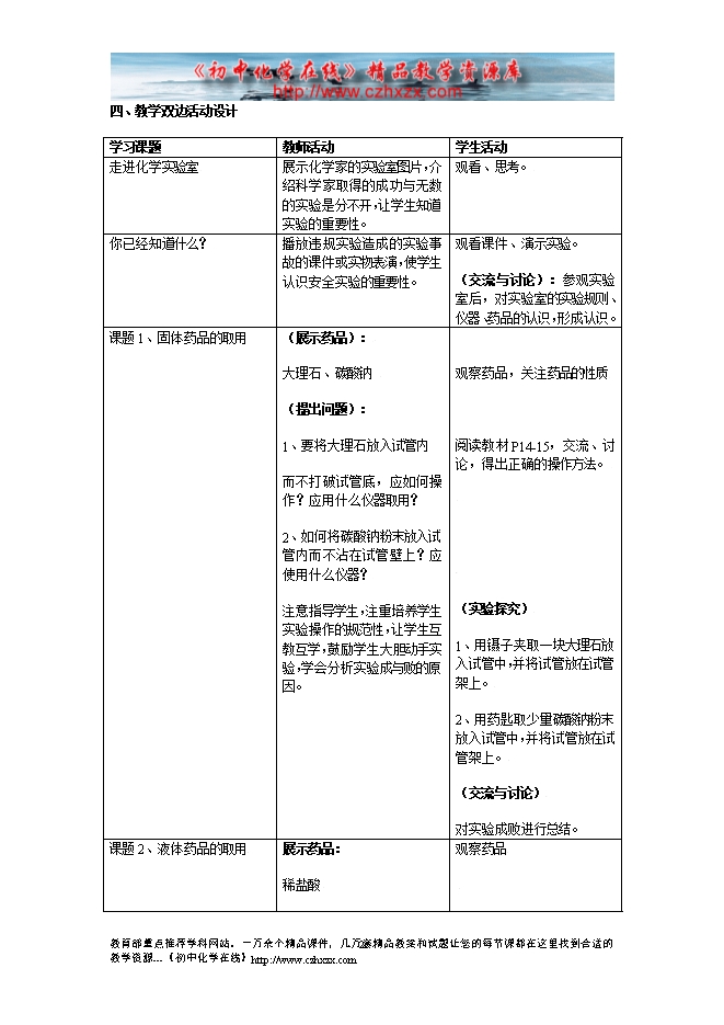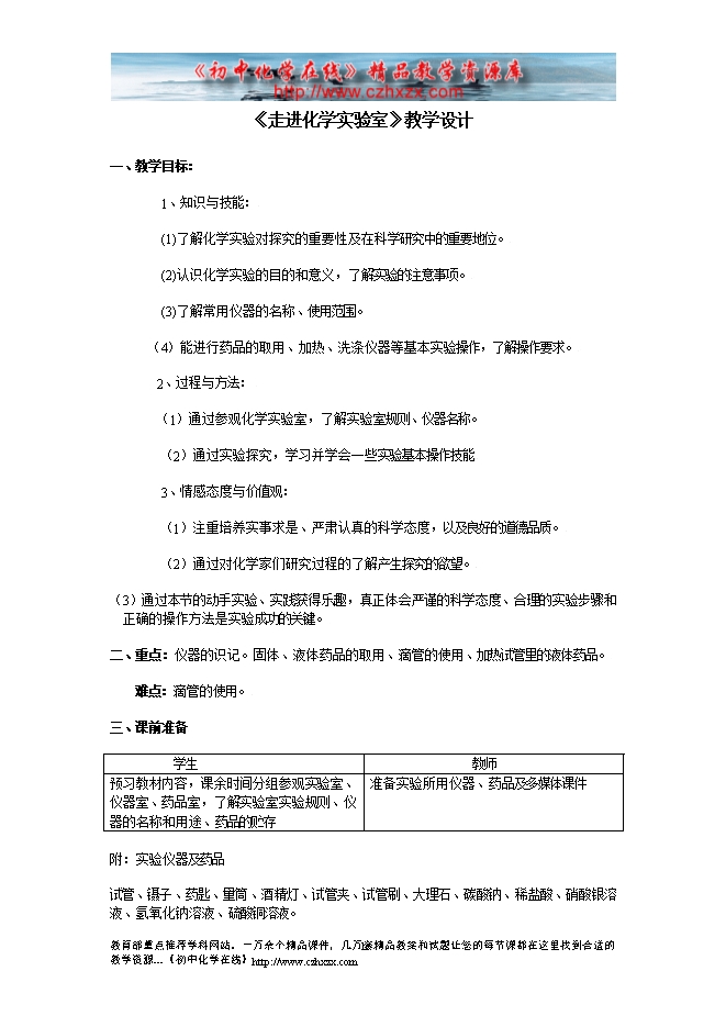 - 上一份资料:鲁教版第一章《第二节 体验化学探究》教学设计(方案一第二课时)