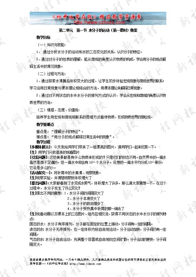 鲁教版第二单元《第一节 运动的水分子》教学设计(方案一)第一课时