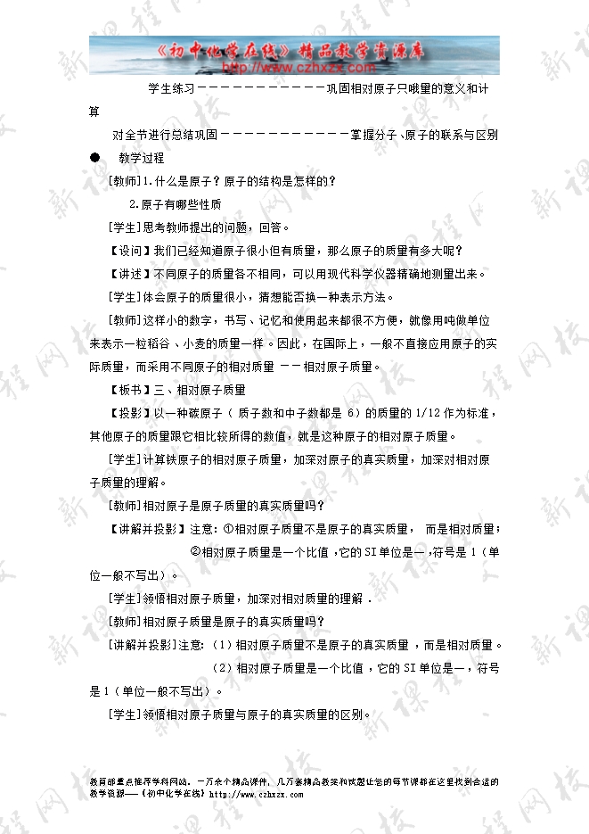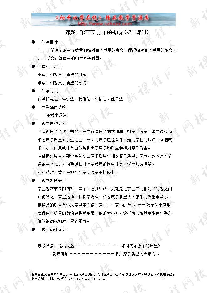 - 上一份资料:鲁教版第二单元《第三节 原子的构成》教学设计(方案一)第一课时