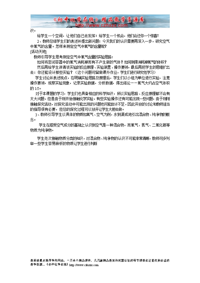 - 下一份资料:鲁教版第四章《第二节 物质组成的表示》教学设计(方案一)第一课时