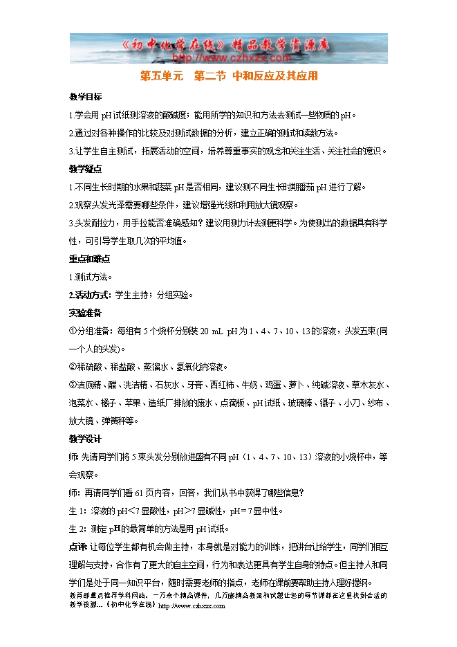 - 上一份资料:鲁教版第七章《生活中的酸和碱》教学设计(旧)