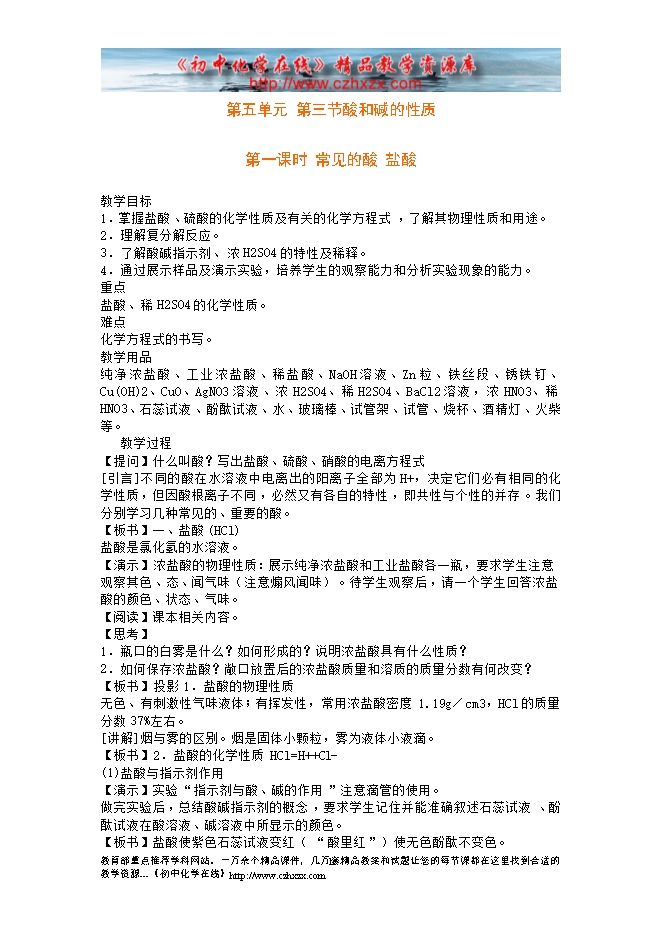 鲁教版第七章《酸和碱的性质》教学设计(旧)第一课时