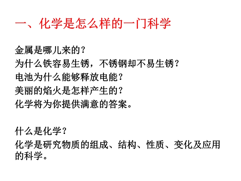 - 下一个课件:京改版九年级上册《第1章第1节 化学让世界更美好》(第一课时)教学课件