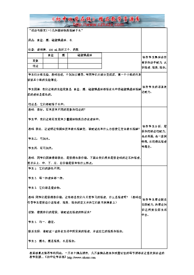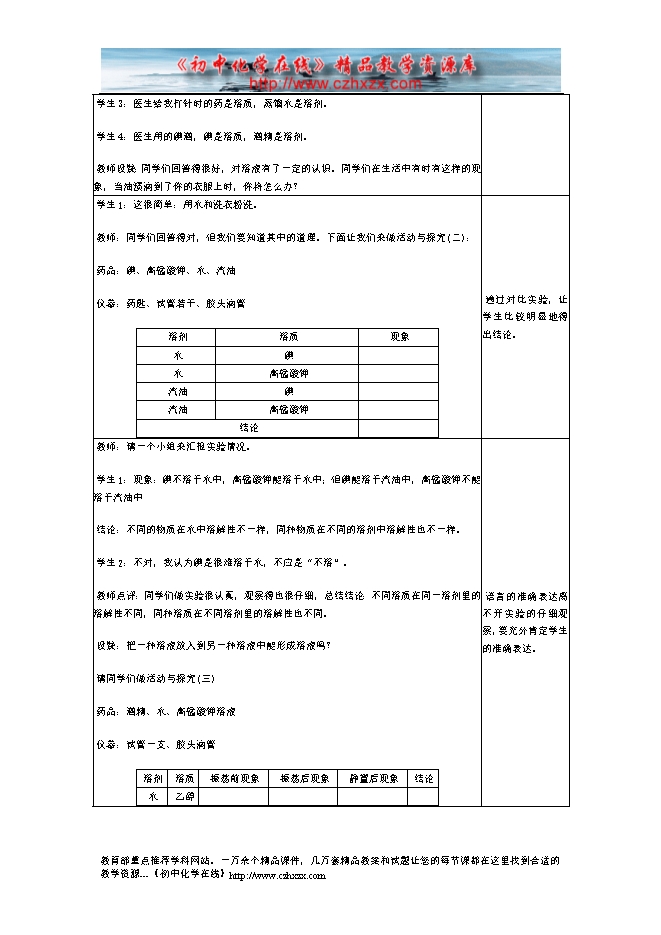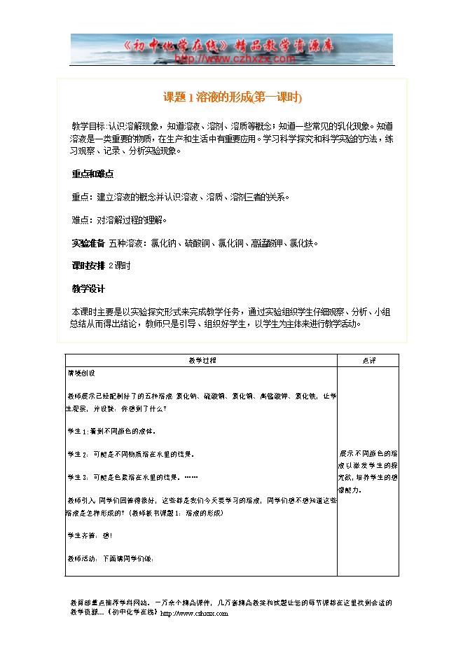 - 下一份资料:人教版《第九单元课题1 溶液的形成》教案(方案一第二课时)