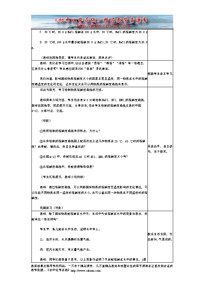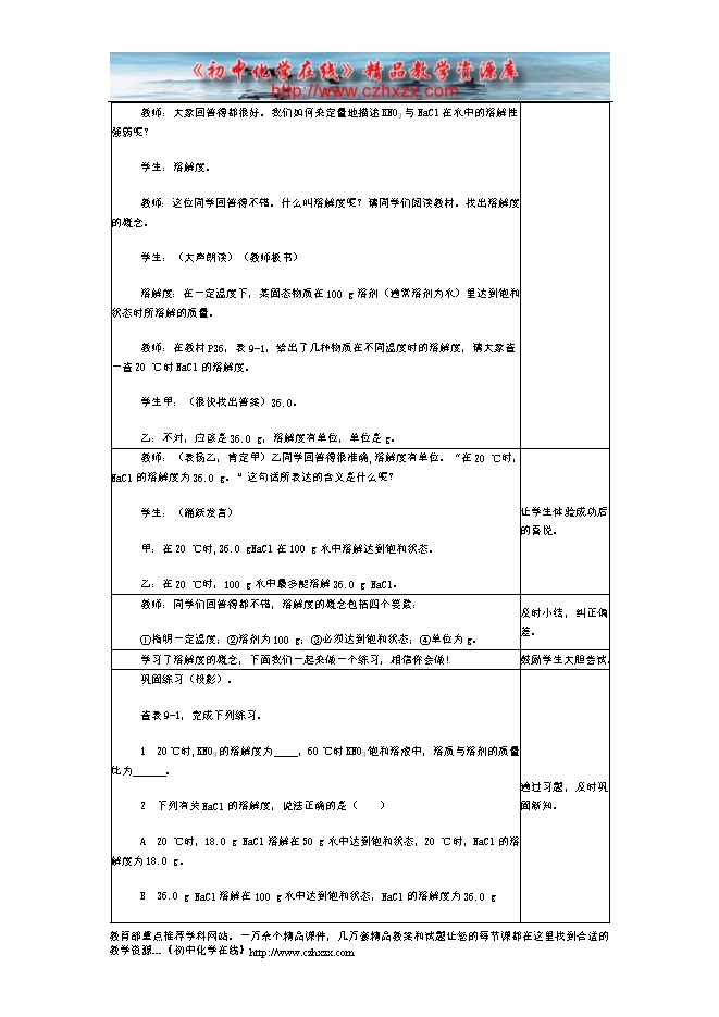 人教版《第九单元课题2 溶解度》教案(方案一第二课时)