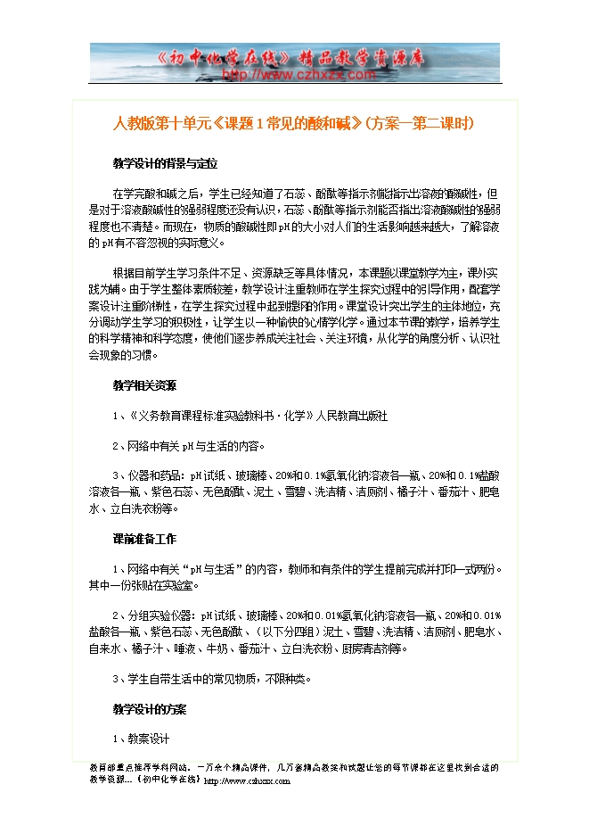 人教版《第十单元课题1 常见的酸和碱》教案(方案一第二课时)